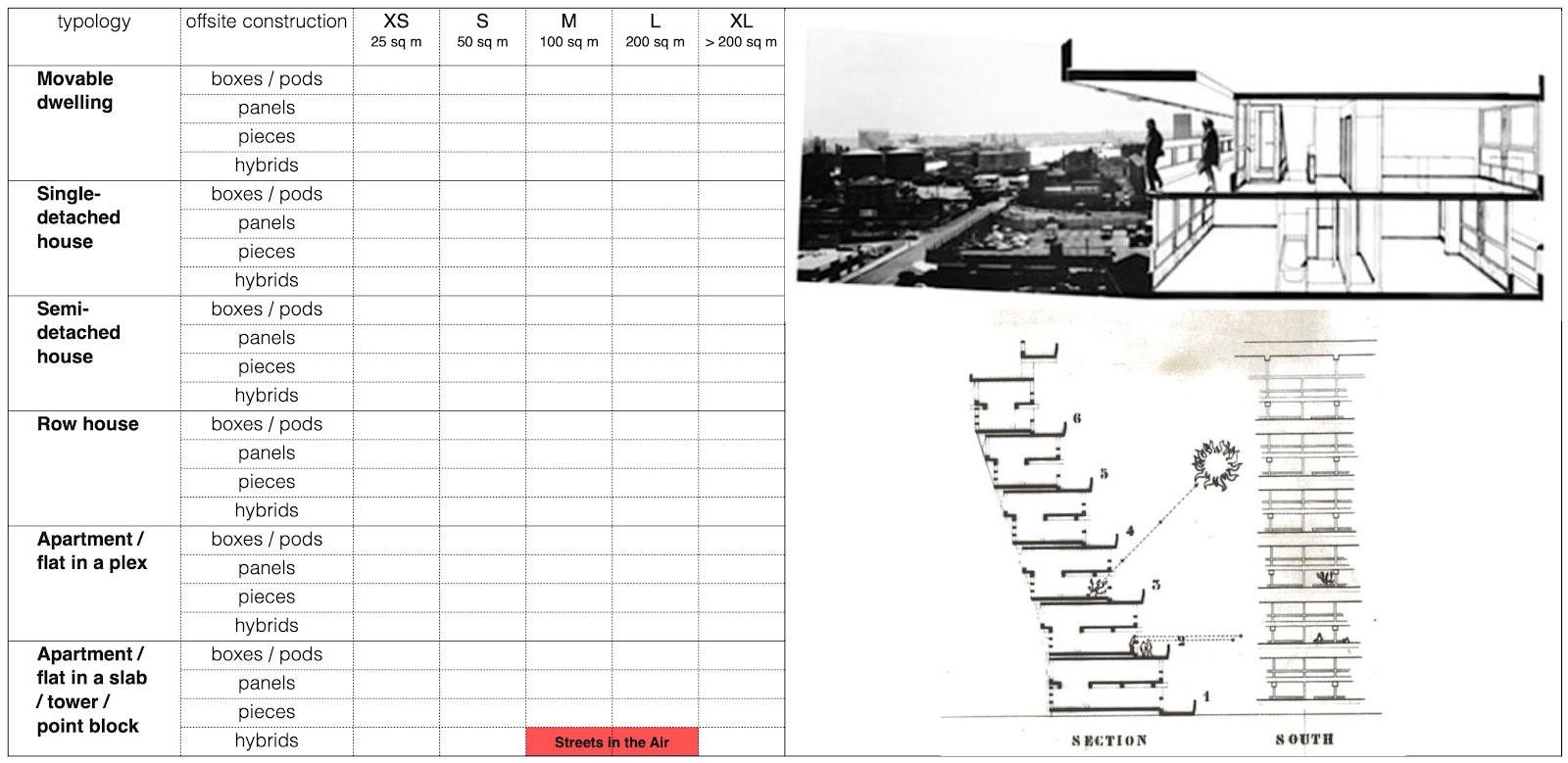 Modular volumetric construction is characterized by three-dimensional, factory produced boxes. This approach sometimes associated with slab buildings, is generally based on repetitive structural grids conducive to typical floor plates; flats with similar dimensions and attributes are simply stacked and coupled. The slab typology doesn’t expressly direct to volumetric as the sole solution for putting these buildings together, however, coordinated, transportable boxes can certainly streamline certain parts of a construction timeline. Further, modularity can be leveraged toward scaling container-like flat types among many housing projects using the same basic structural elements and systemic components - a strategy now identified as a platform approach to building.